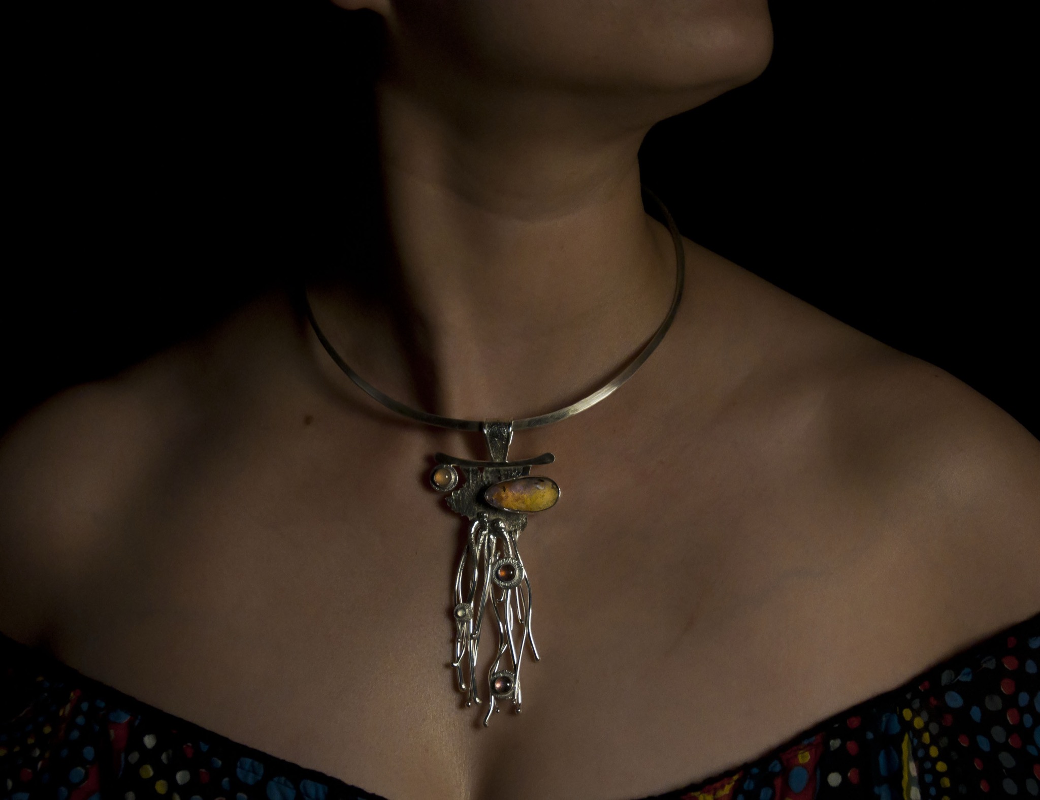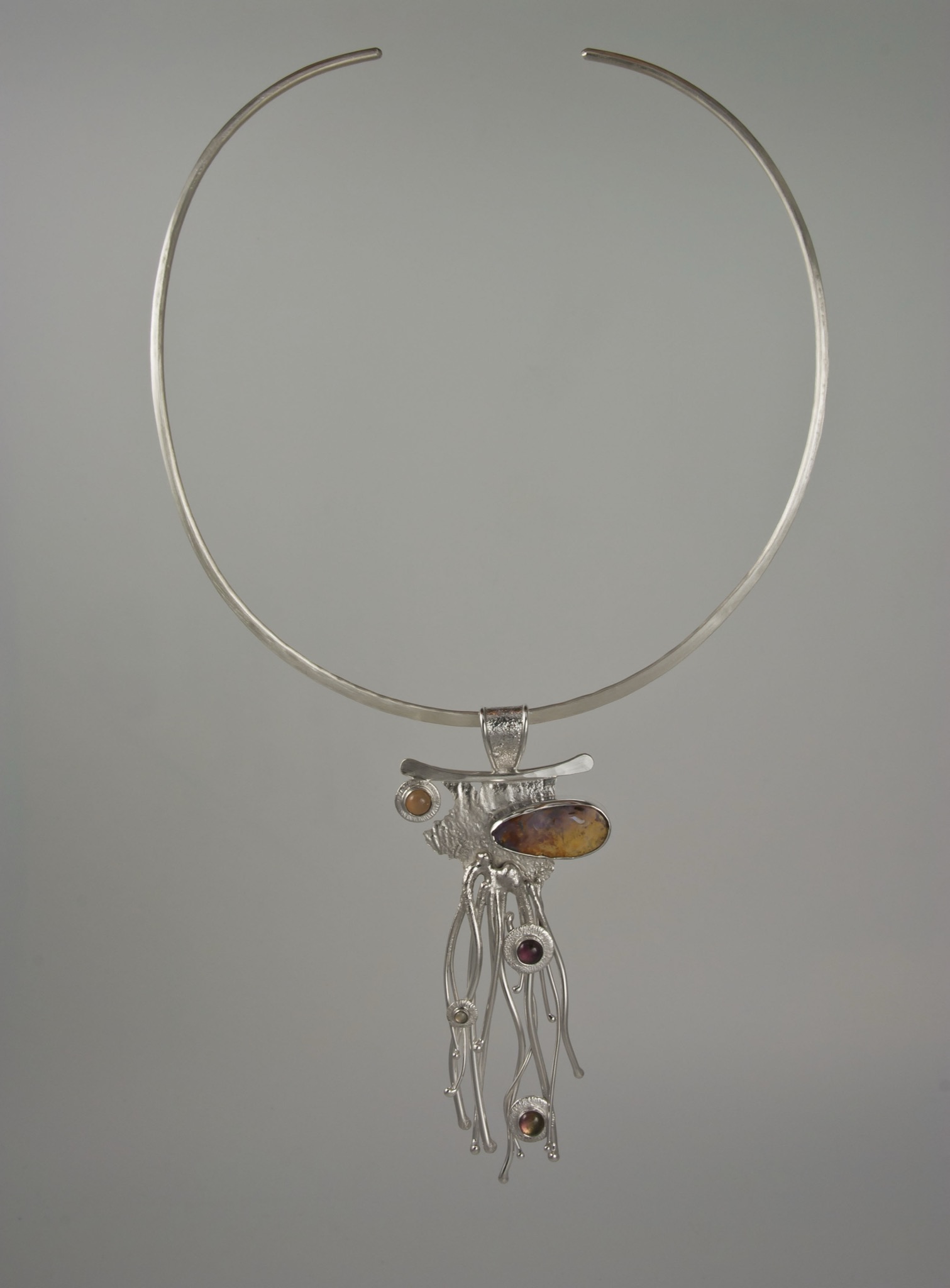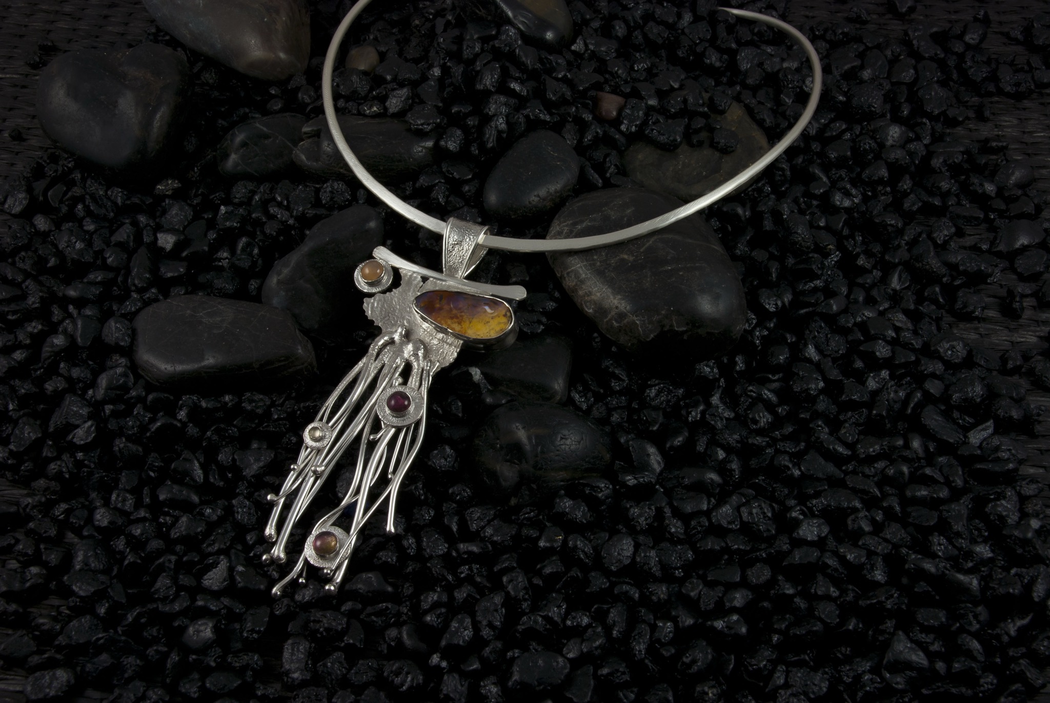 • Silver pendant with bolder opal, moonstone and tourmaline