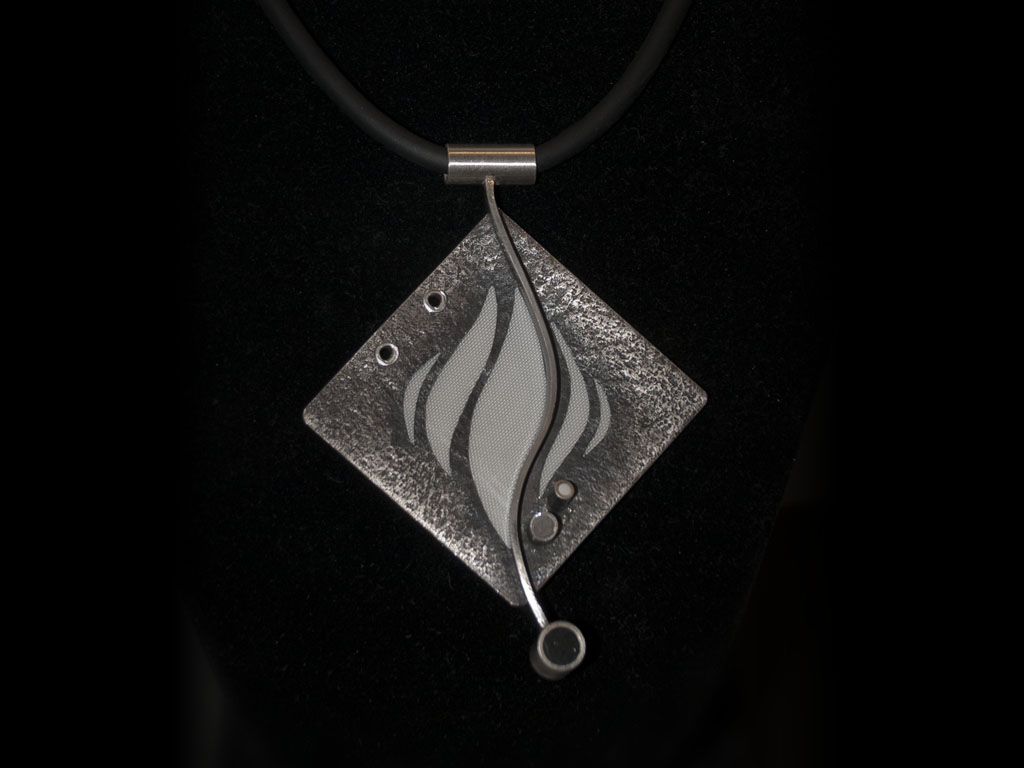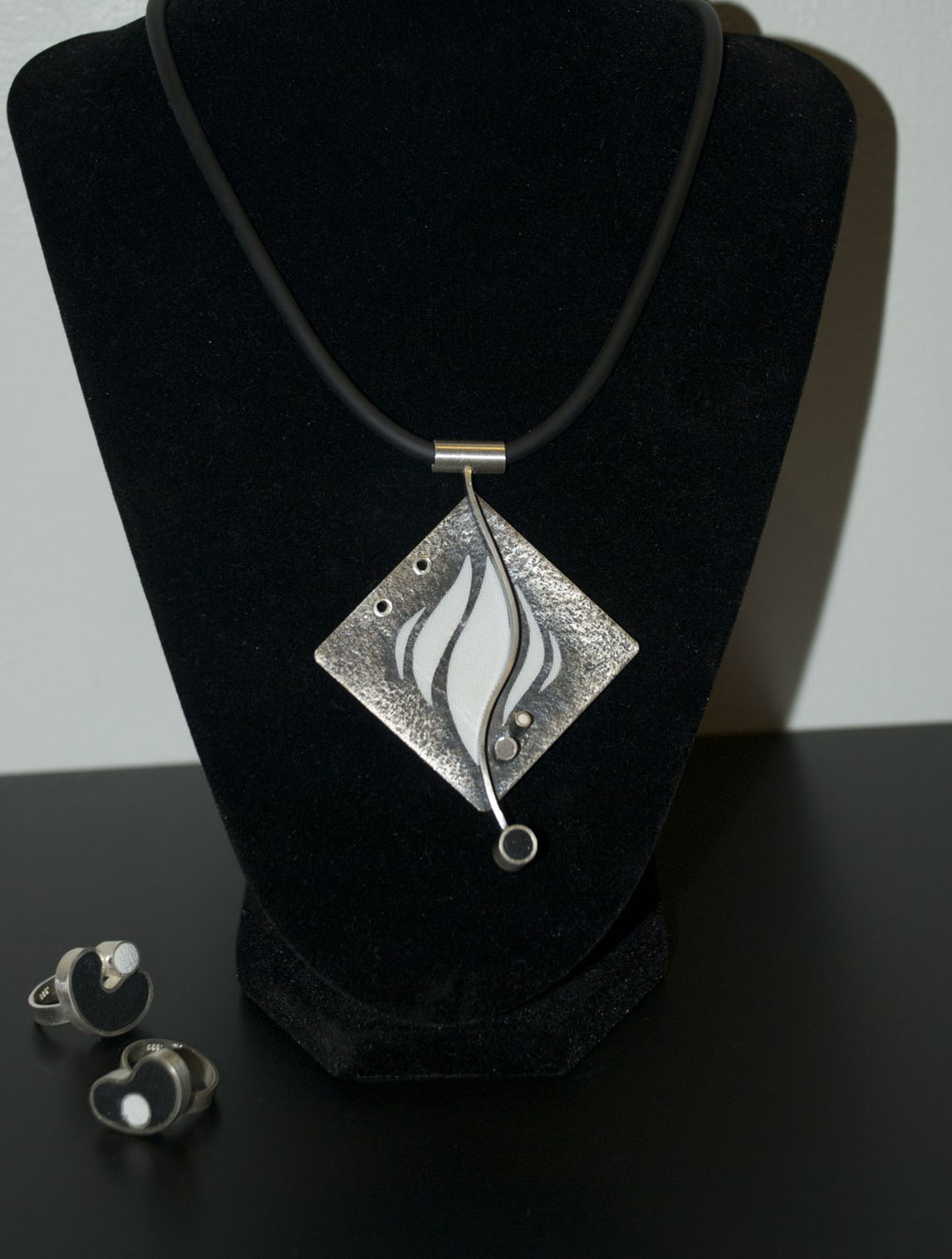This piece incorporates the new medium of Polymer clay, birthed as a jewelry medium in the same time frame.