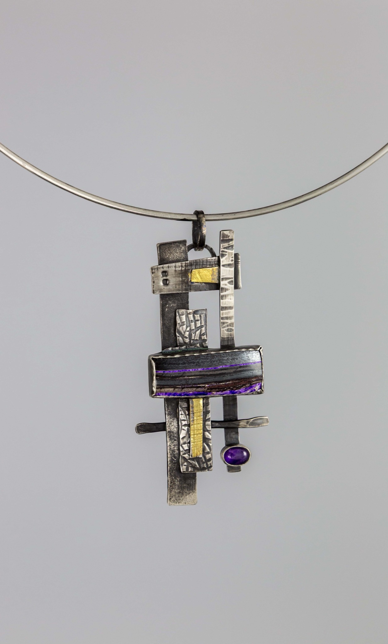 Alternate Timeline Alternate Timeline Alternate Timeline Artist Blair Anderson Metals Sterling Silver • 24k Gold Stones Sugilite • Amethyst Techniques Keum-boo $645.00