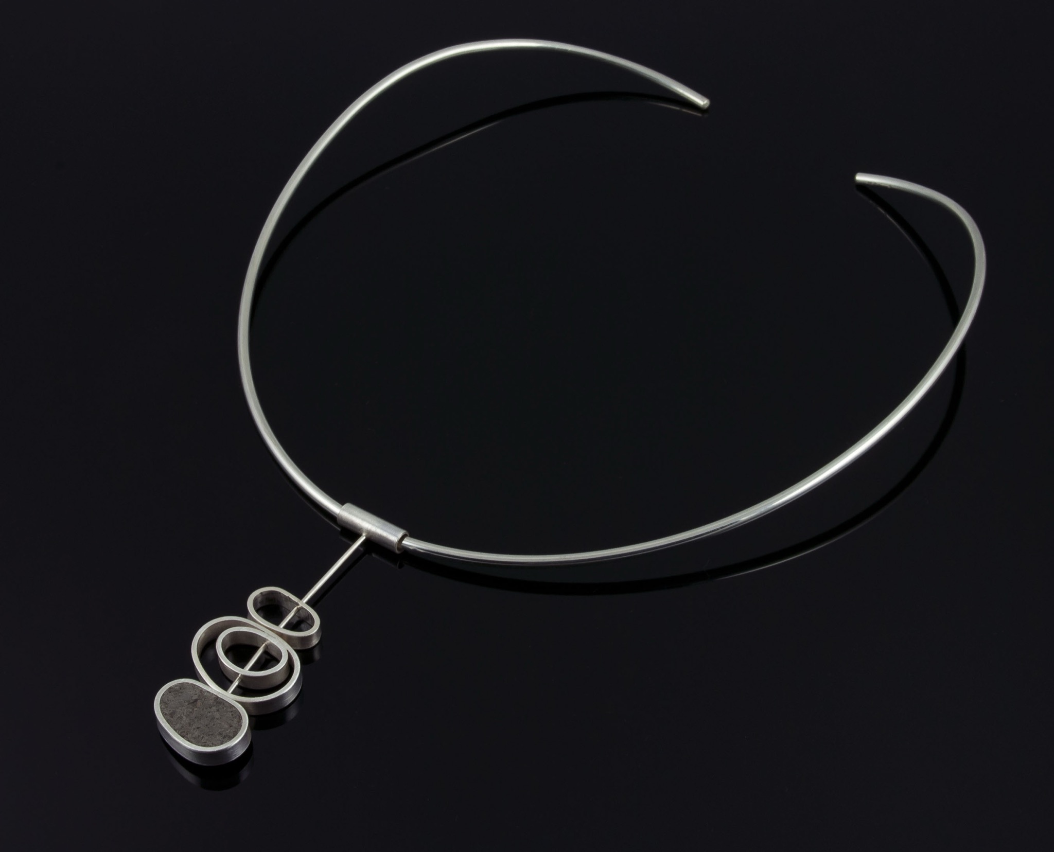 Many cultures have stacked stones to create a memorial. Combining Sterling Silver with concrete I have made wearable milestones for remembering important moments in life.