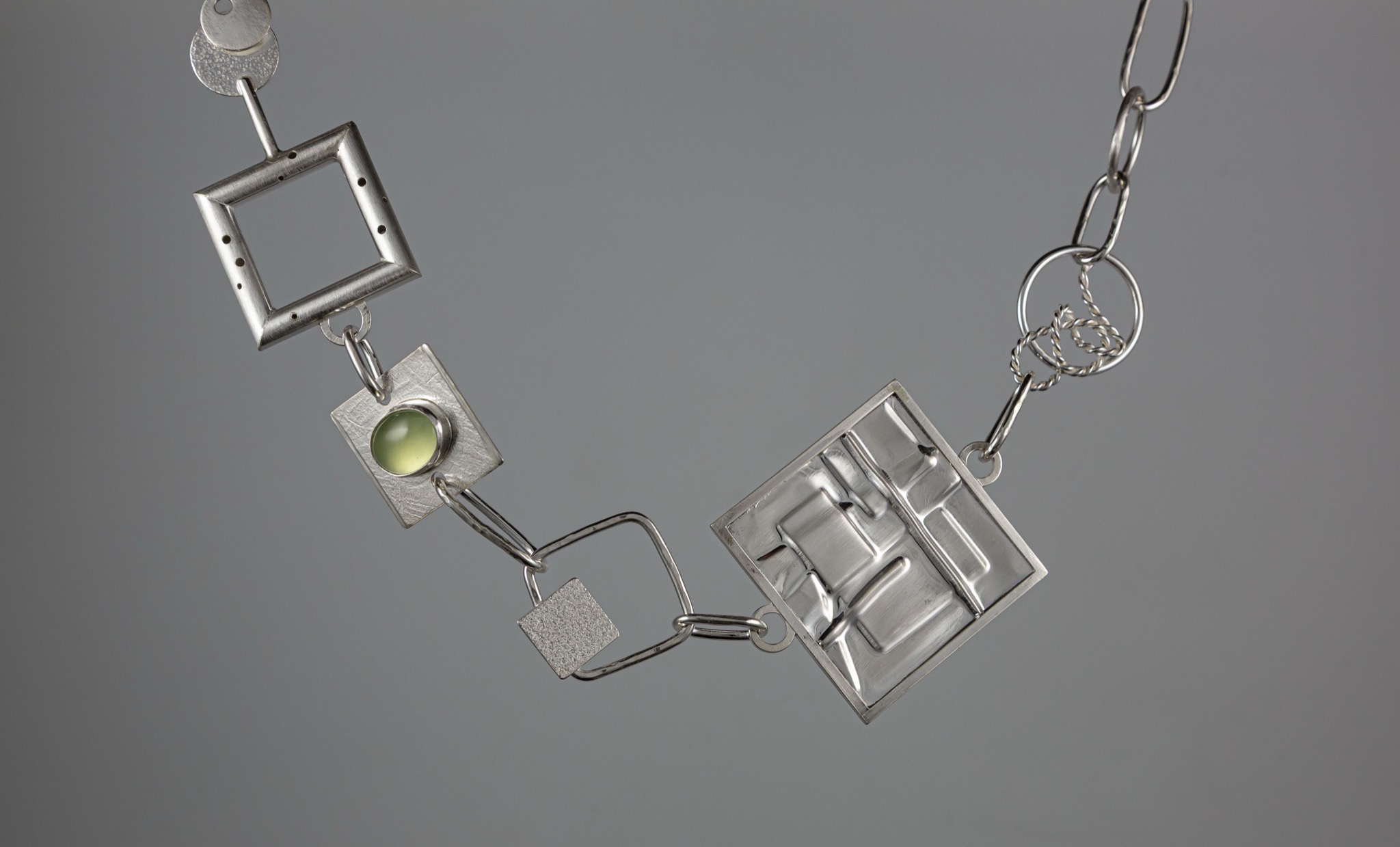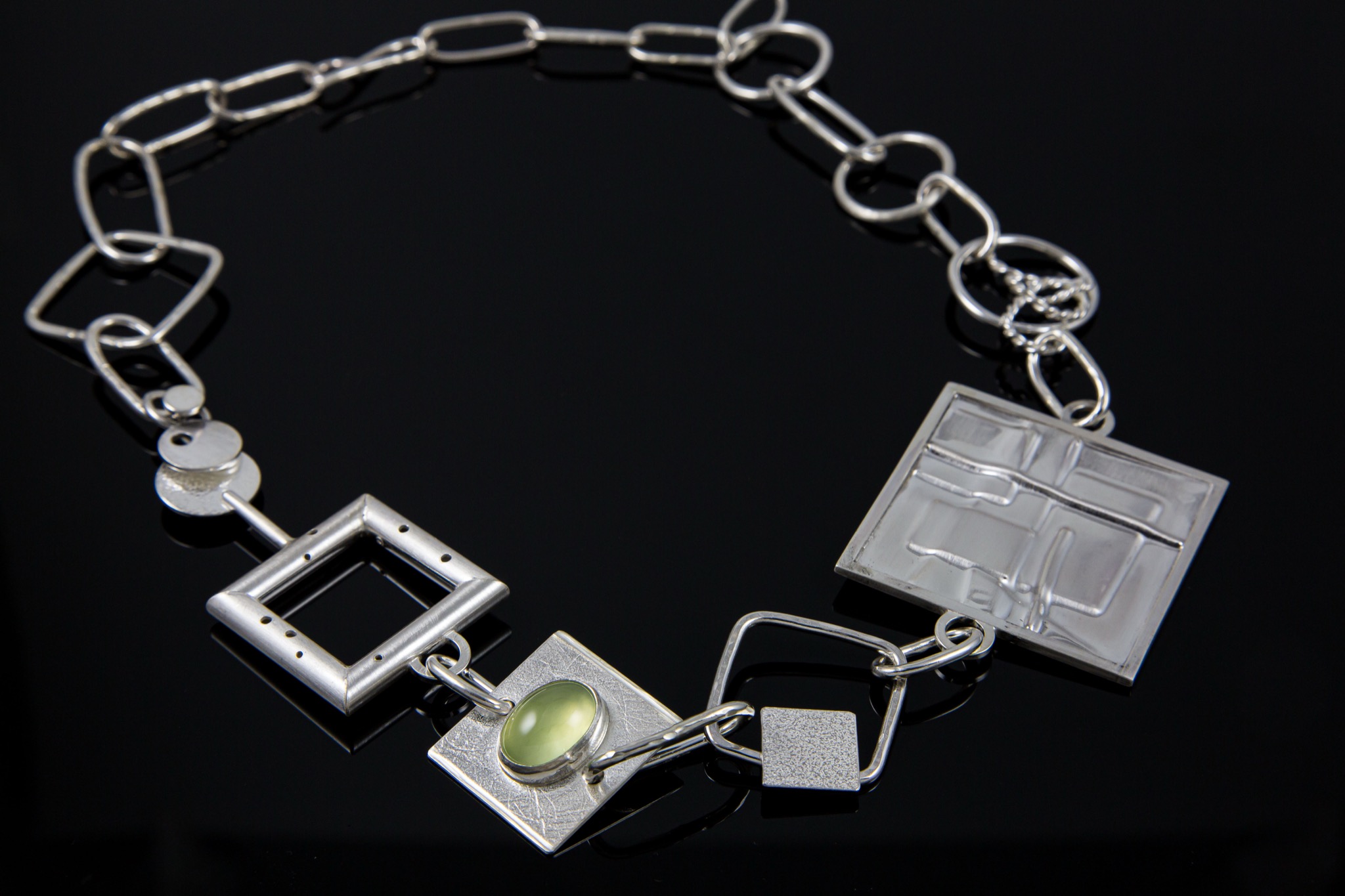 All things sailing is what is reflected in this piece. Water, sail, rope and wind. Prehnite is said to connect one with the elements.