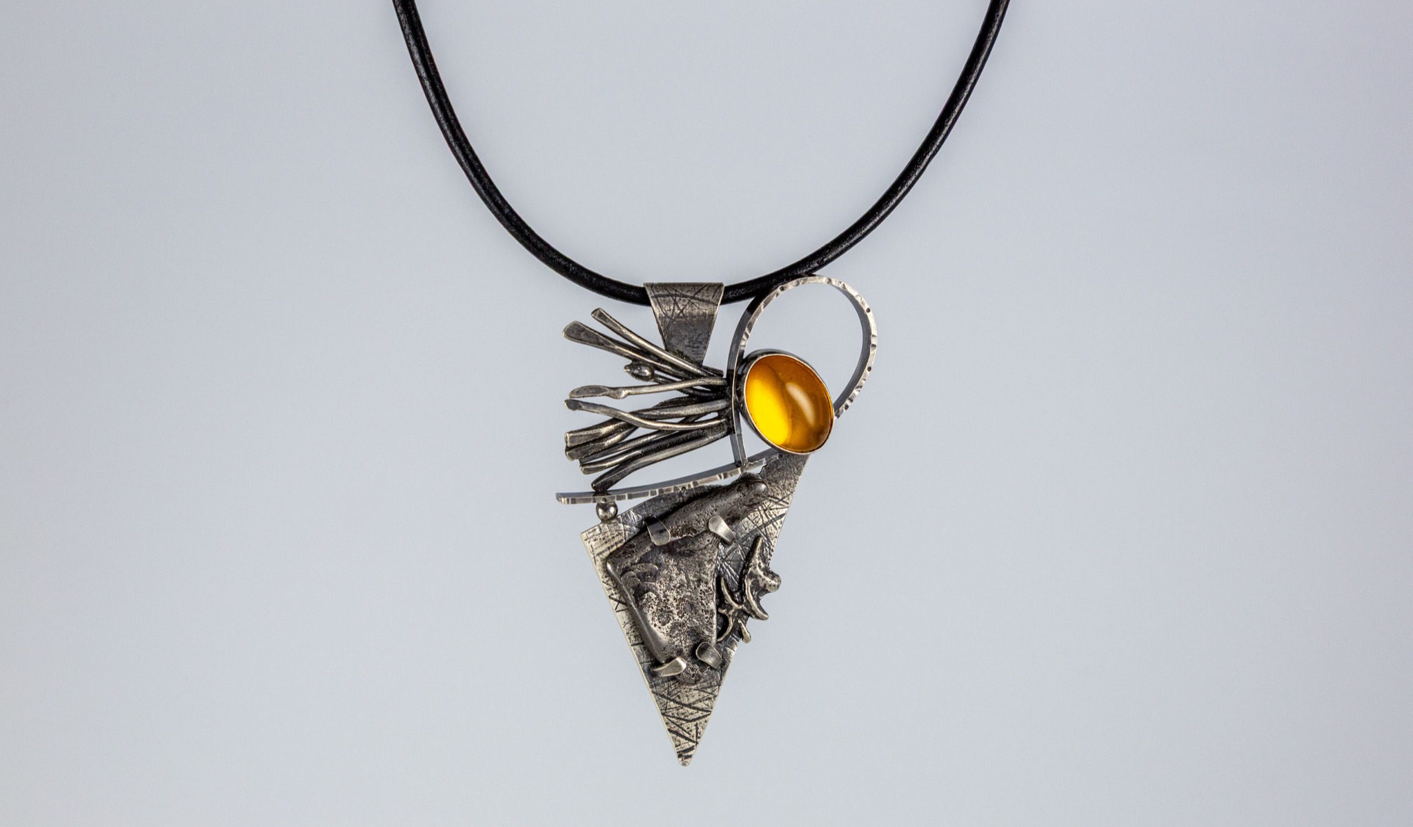 Magic and power hatched from a little egg. This pendant is my interpretation of the first dragon. With the otherworldy Meteorite as skin and Amber eye, can’t you imagine it in flight?
