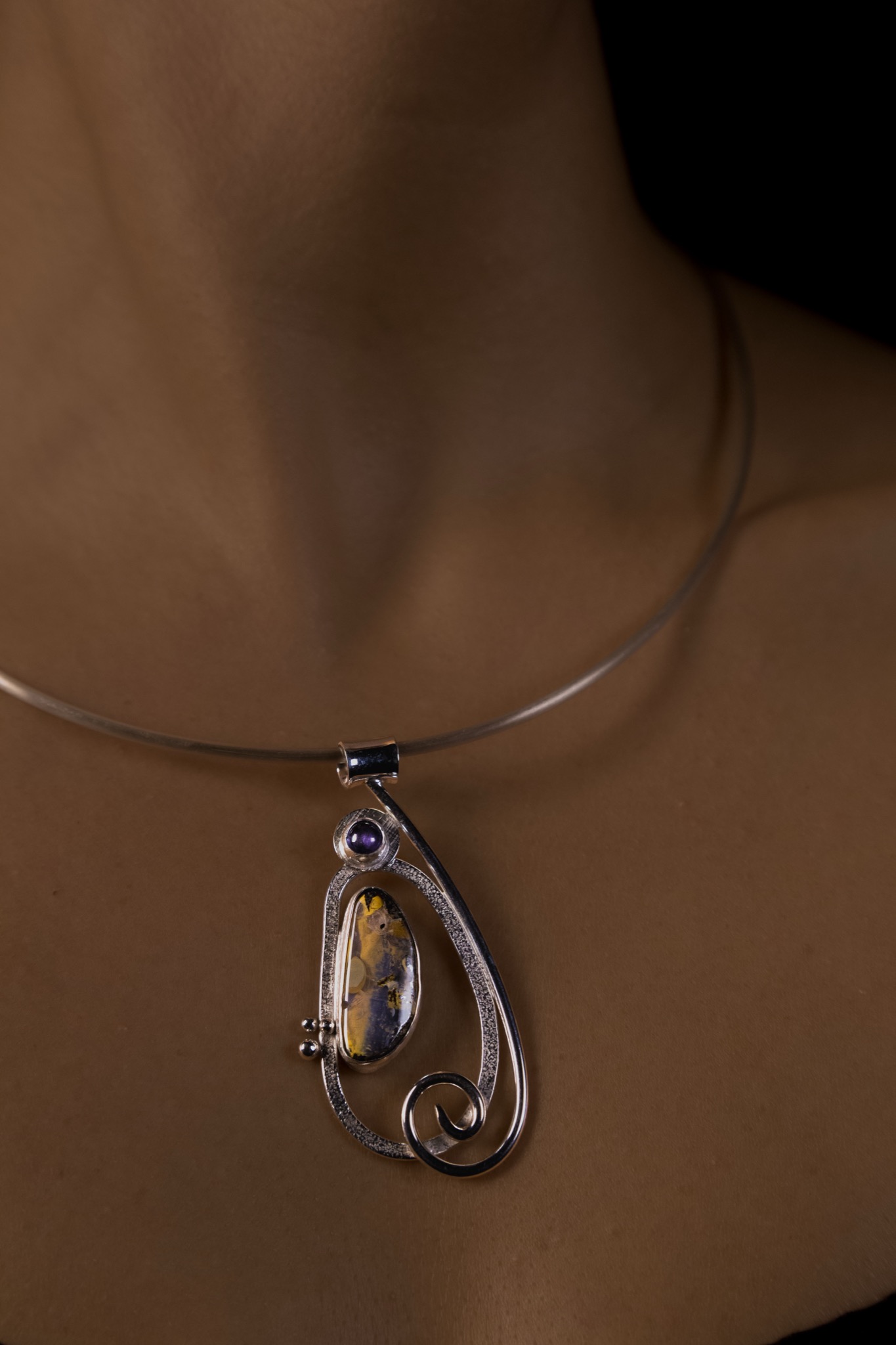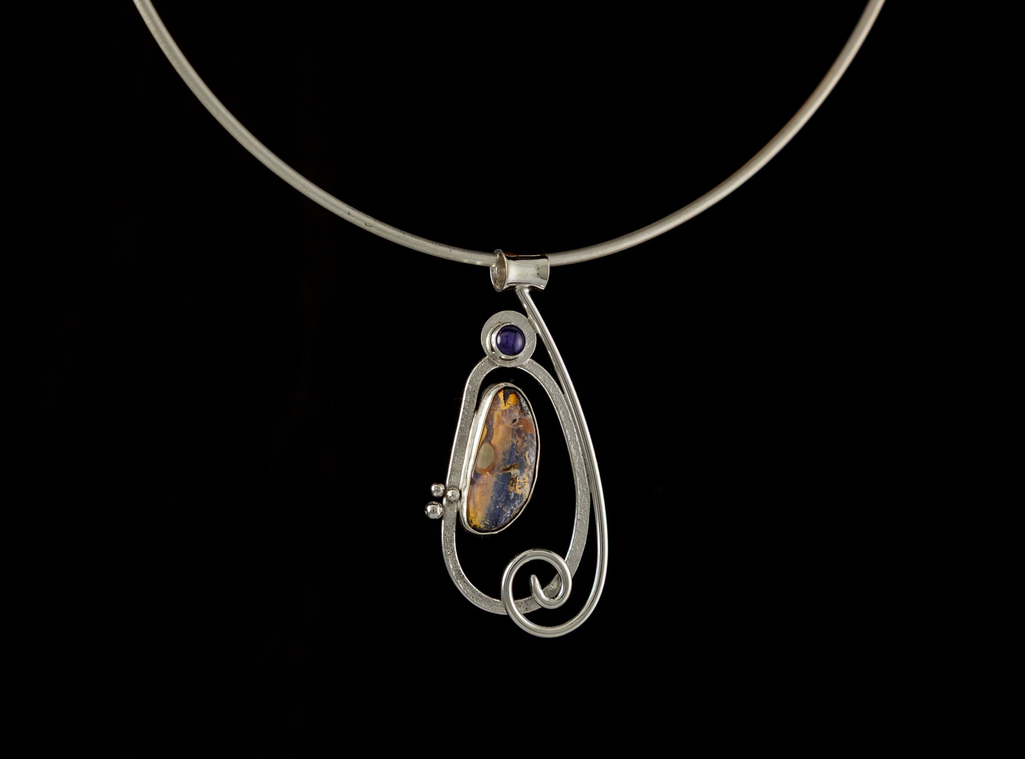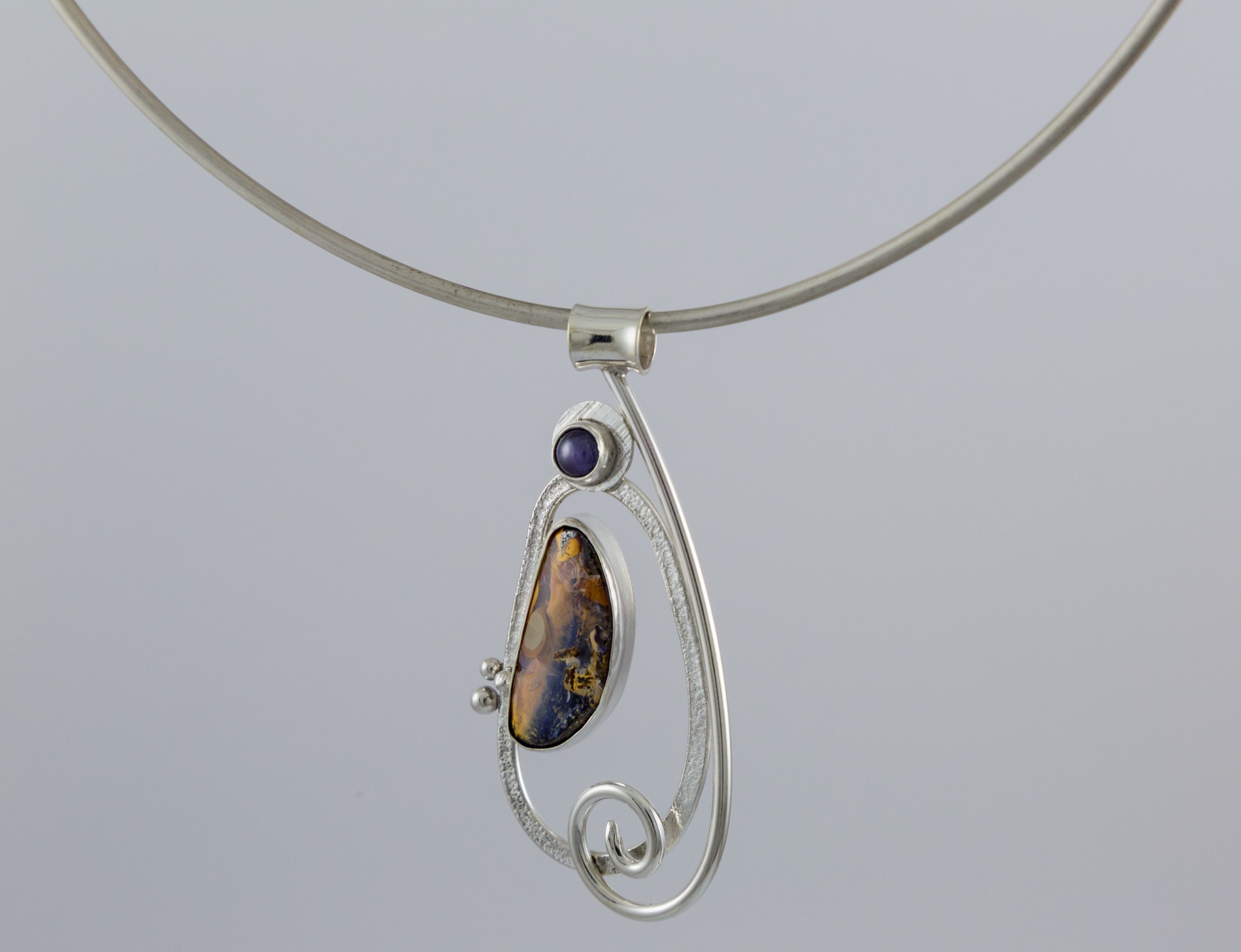 Iolite is the stone of the muses while the boulder opal provides grounding for the creative spirit.