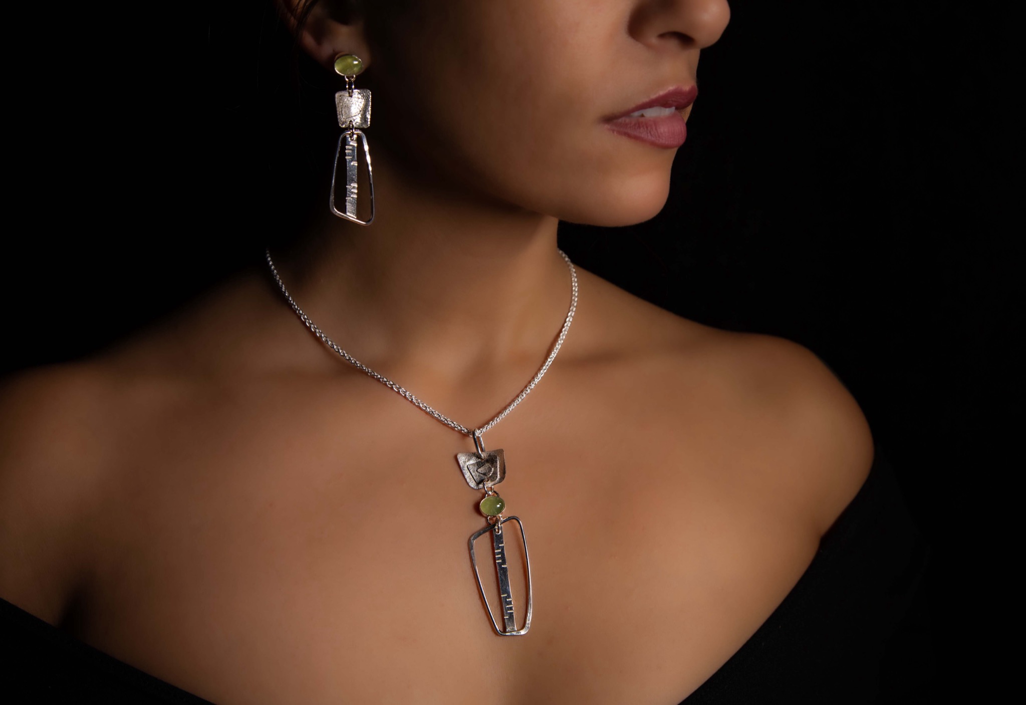 Green Dhuku Earrings Green Dhuku Set Green Dhuku Earrings Artist Blair Anderson Metals Sterling Silver Stones Labradorite Collection Dhuku $225.00