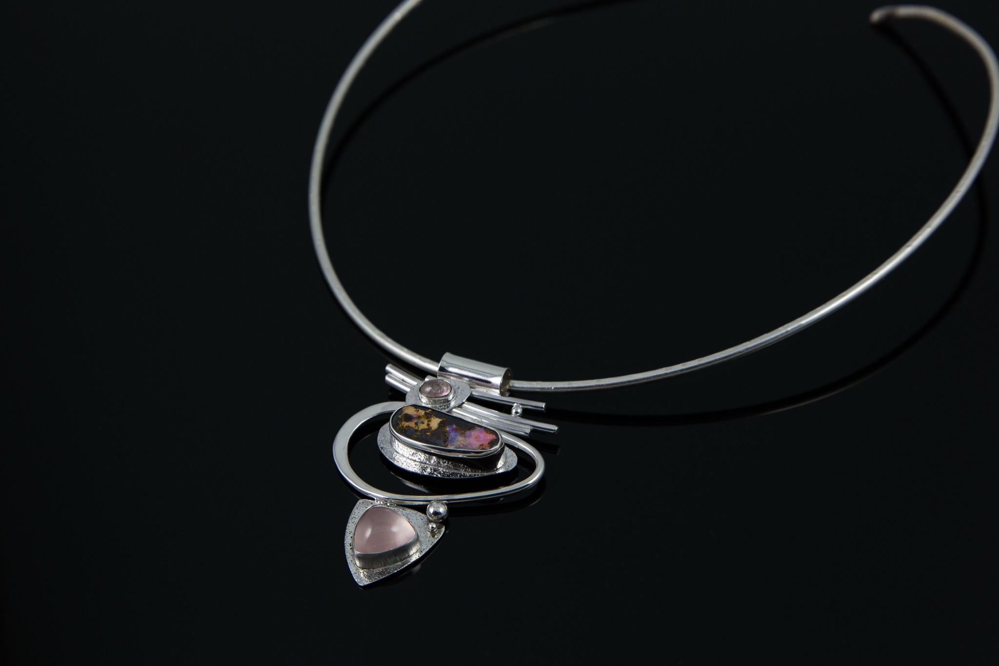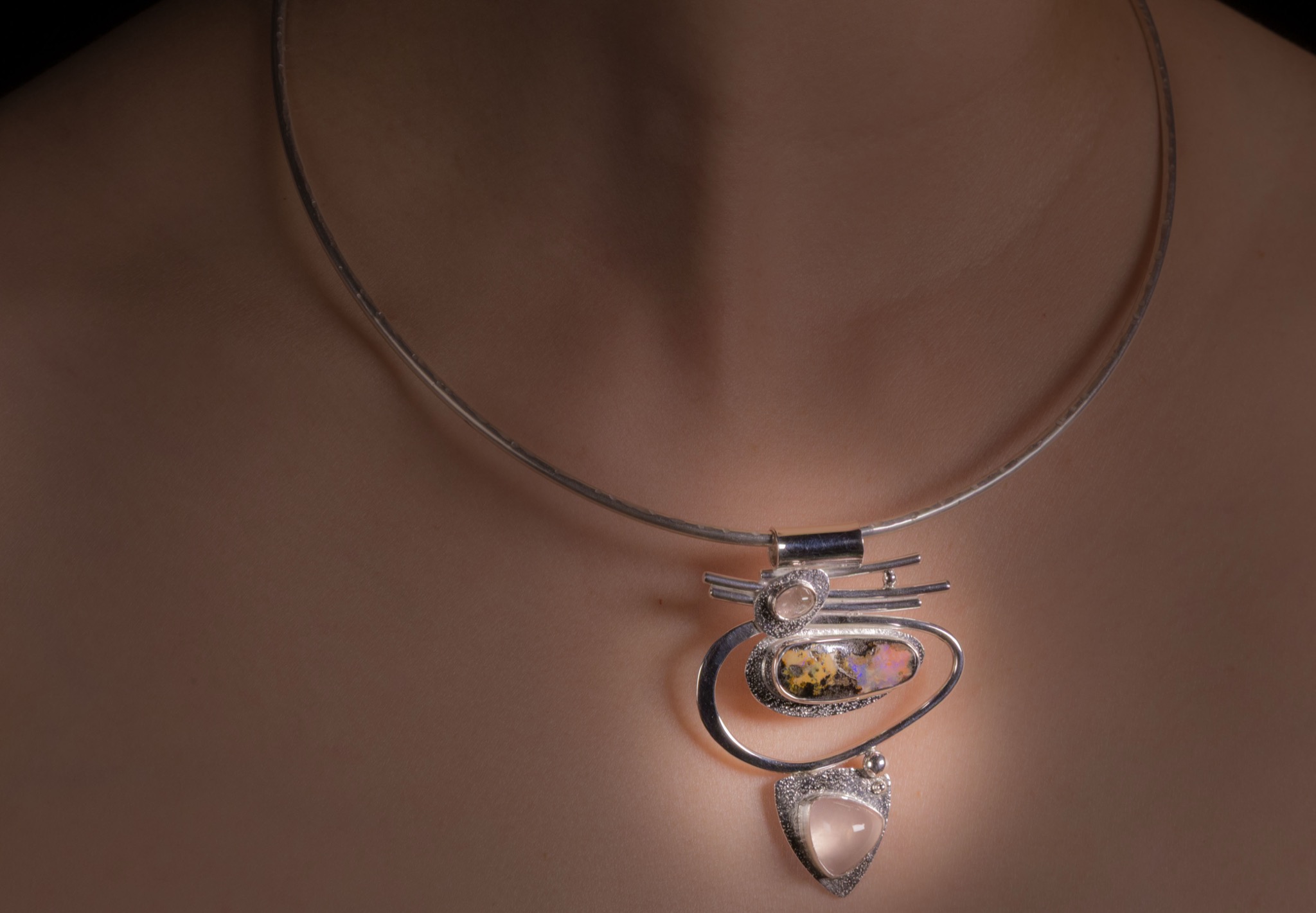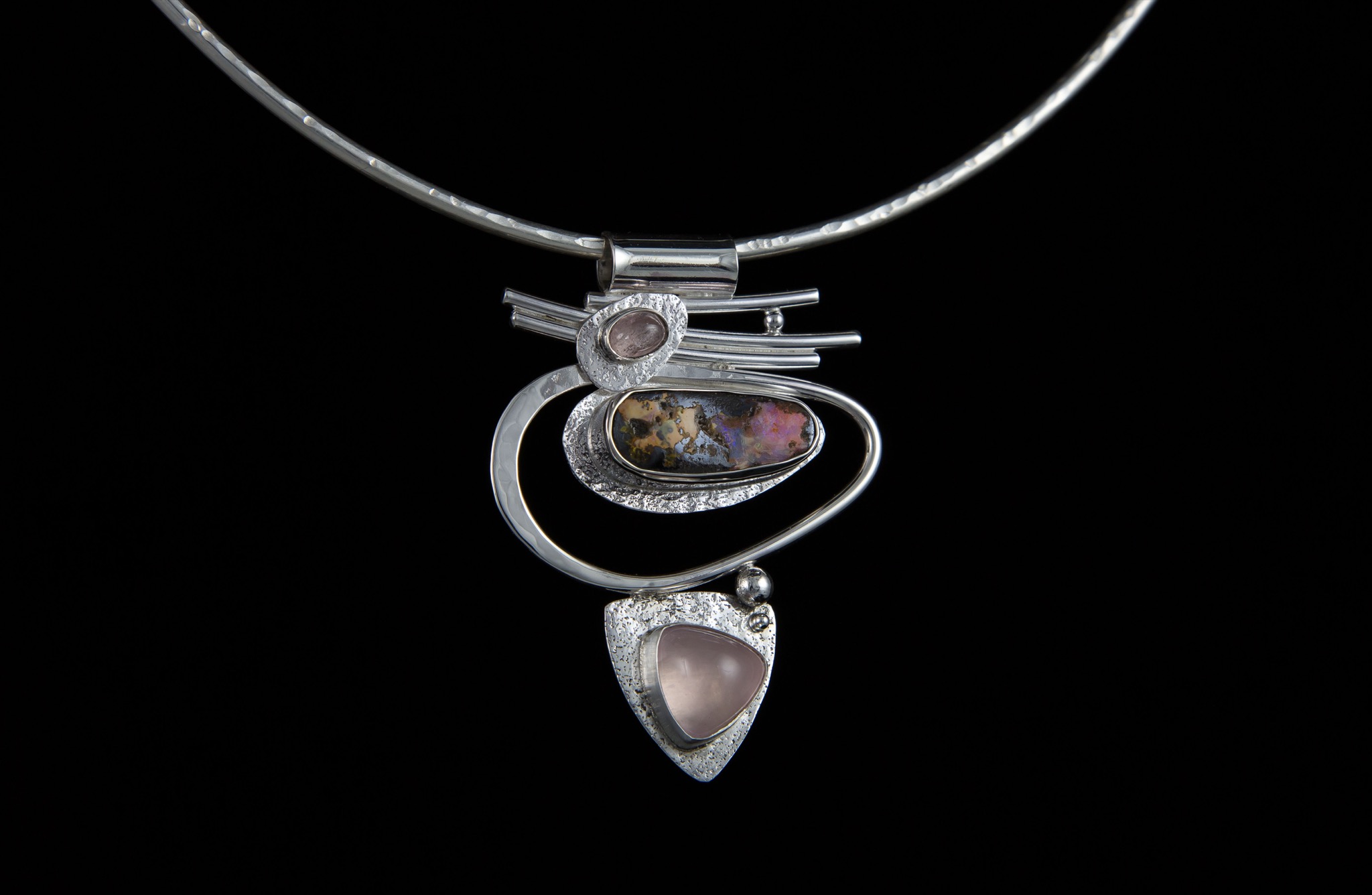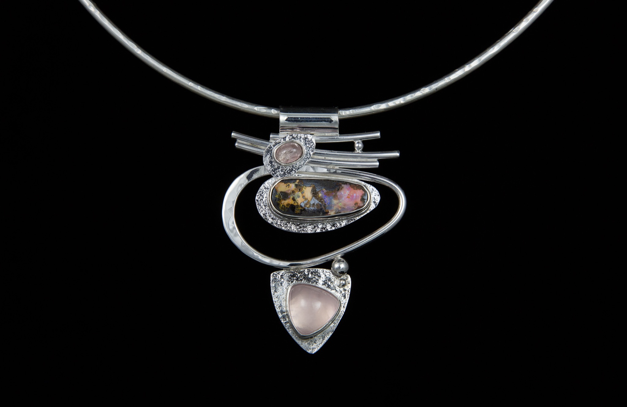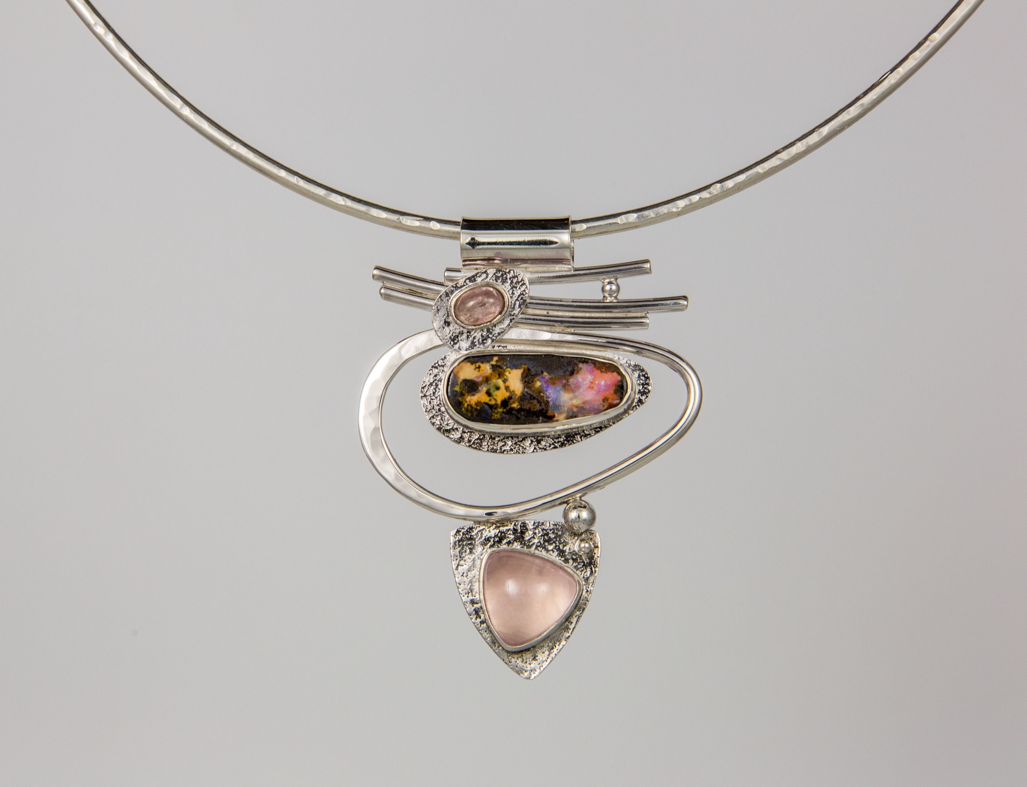 Healing Powers 2 features Boulder Opal for healing tumors, Rose Quartz for love and Tourmaline for stamina. The subtle shapes depict heath in balance.