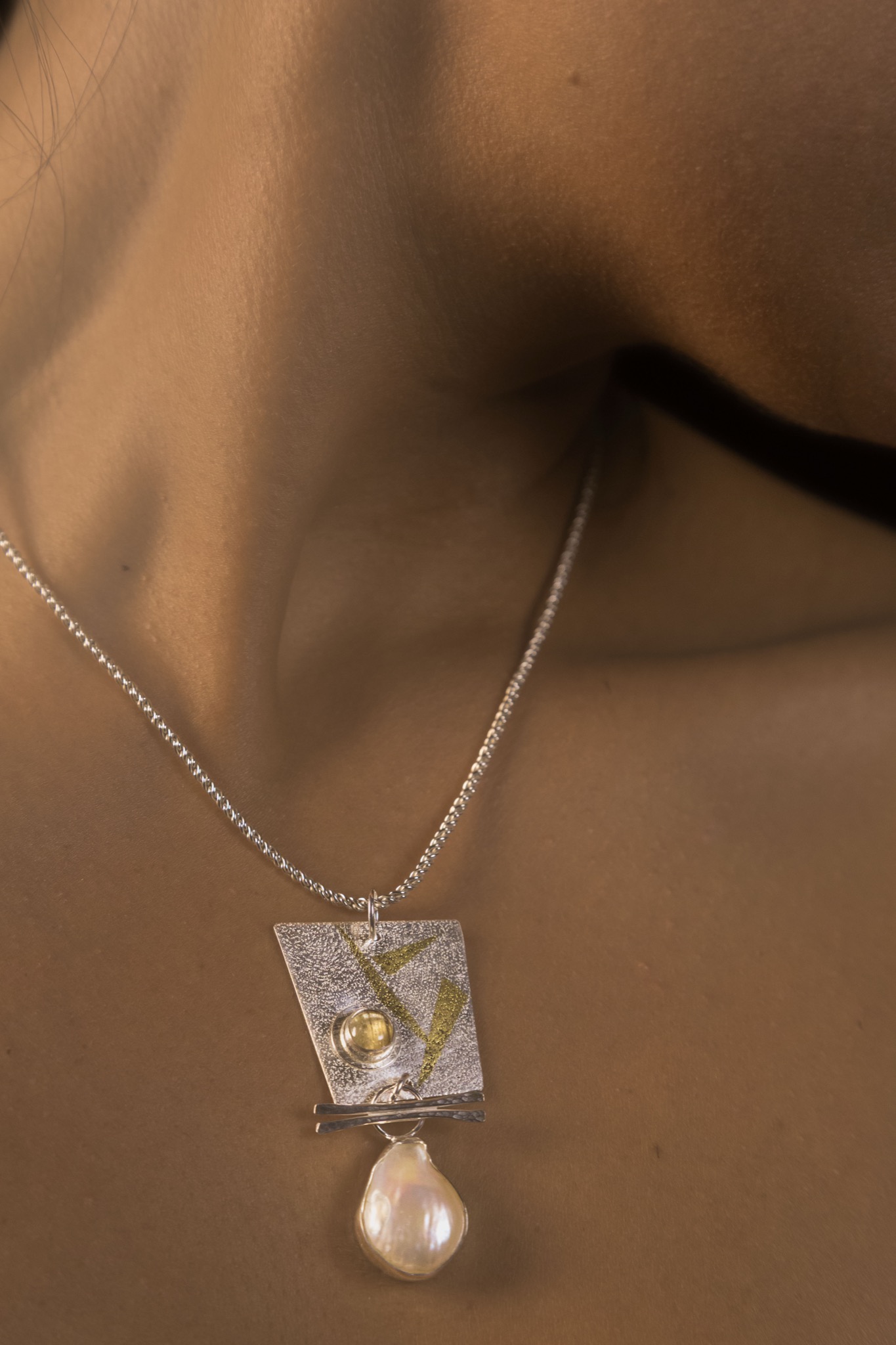 Joy In Wisdom Joy In Wisdom Joy In Wisdom Joy In Wisdom Rutilated Quartz from BrazilBaroque Pearl from Western Australia Artist Blair Anderson Metals Sterling Silver • 24k Gold Stones Rutilated Quartz • Baroque Pearl Techniques Keum-boo $325.00