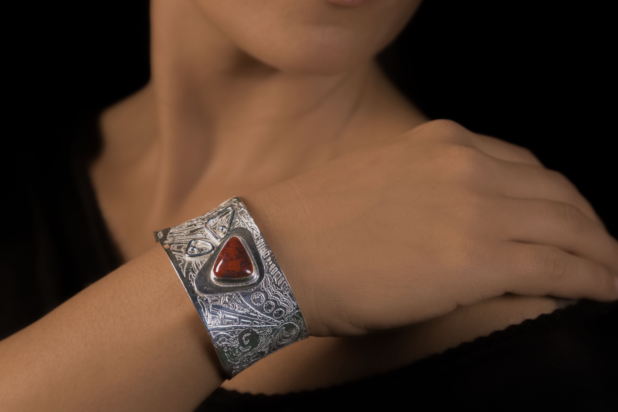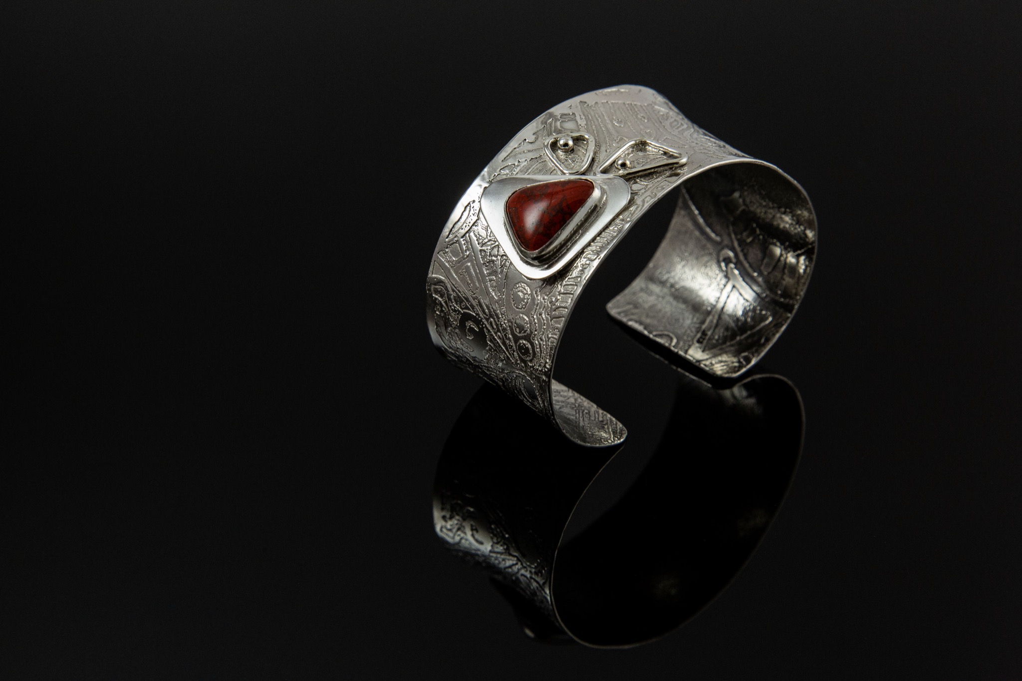 Laughter Laughter Laughter Stone from Oregon Artist Blair Anderson Metals Sterling Silver Stones Red Moss Agate Other Materials Original Illustration Techniques Etching $350.00