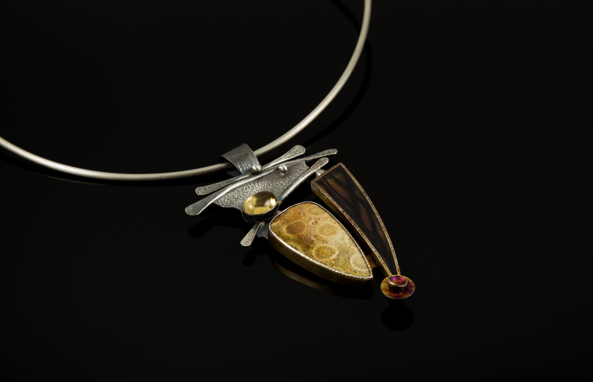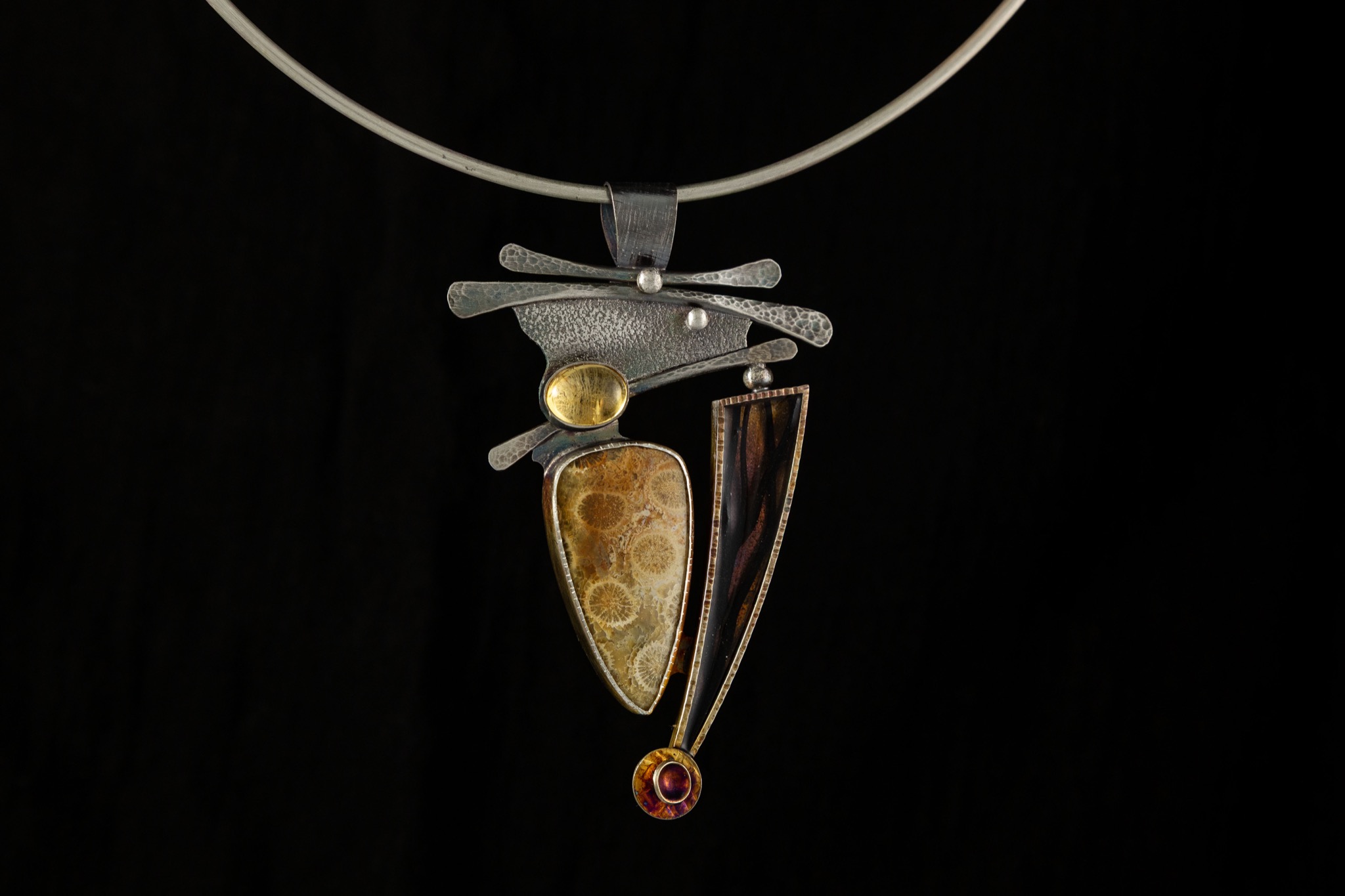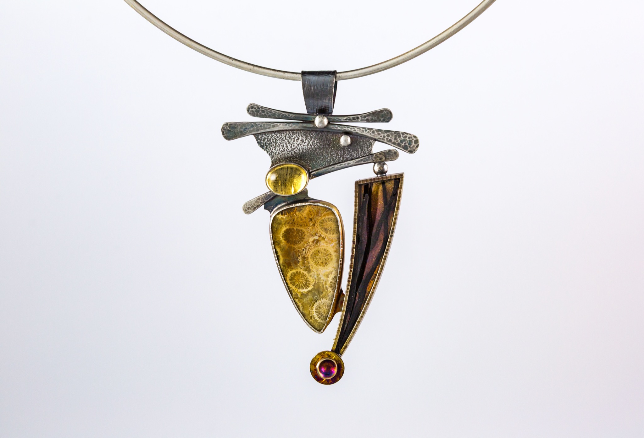 Oceans Old & New Oceans Old & New Oceans Old & New Oceans Old & New Coral from Indonesia Artist Blair Anderson Metals Sterling Silver Stones Black Coral • Fossilized Coral • Citrine Other Materials Resin $925.00