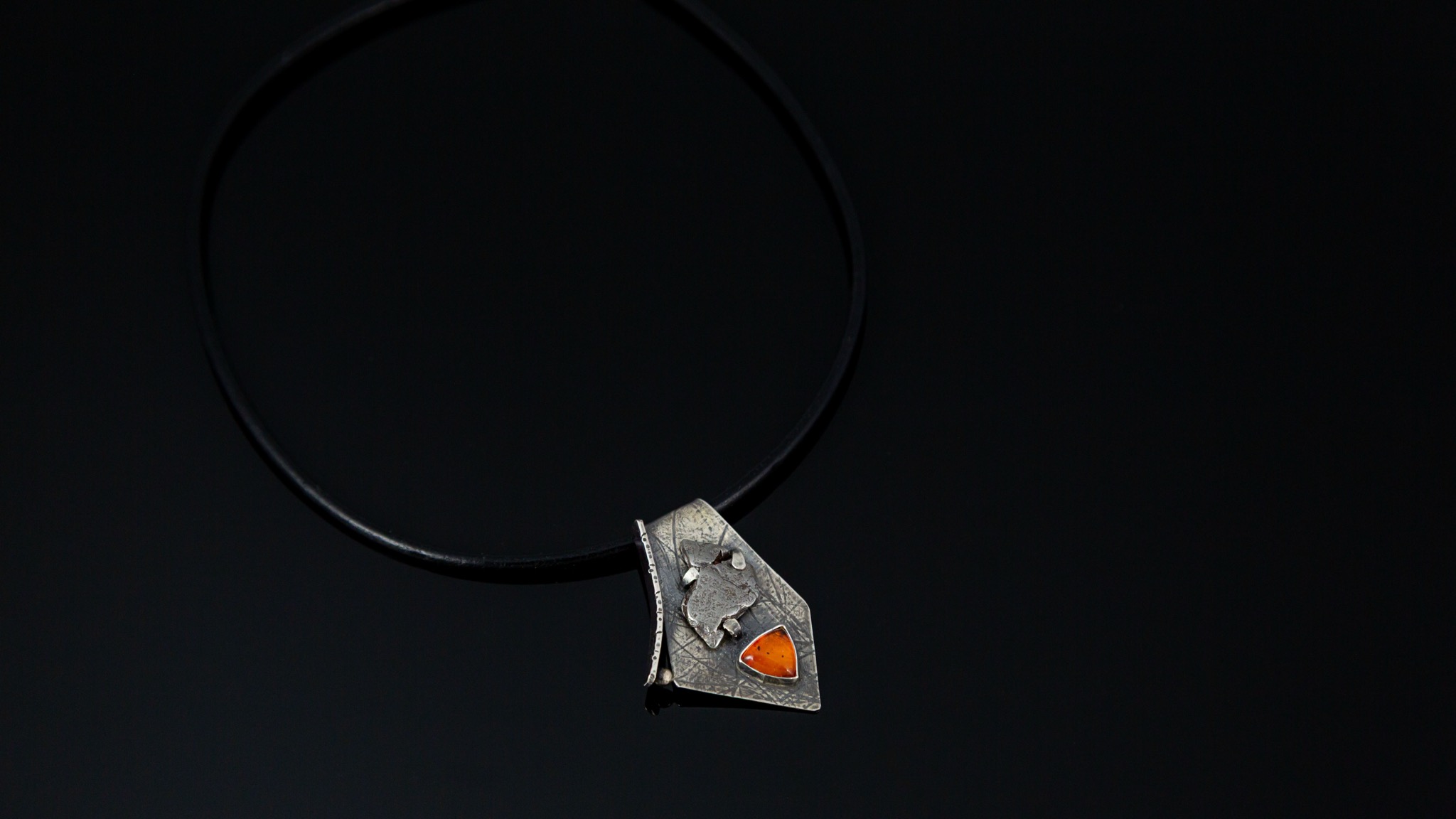 The second of Daenerys Targaryen three dragons. Meteorite and Baltic Amber on an oxydized textured Sterling Silver just speaks myth and magic.