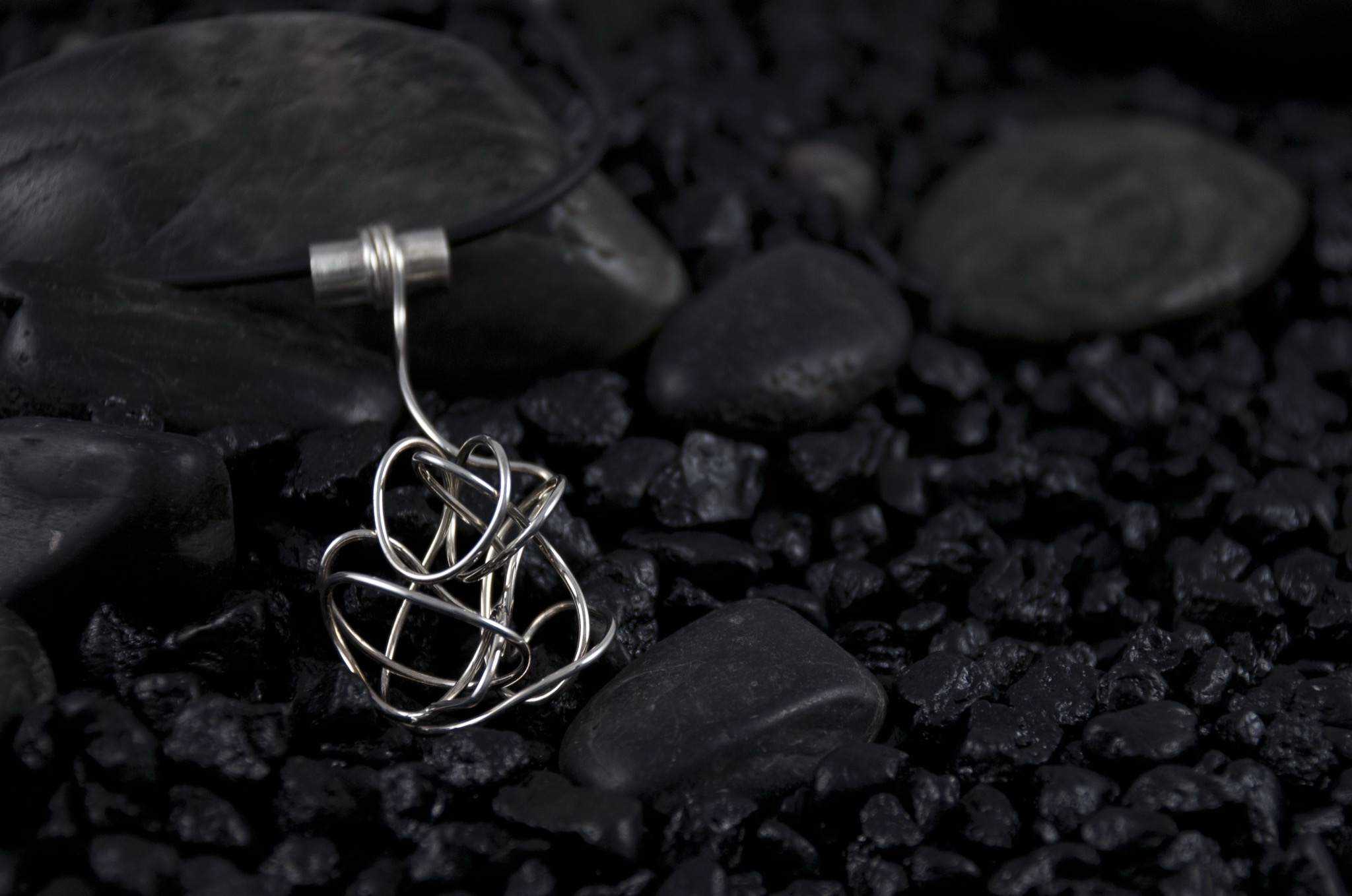 Silver necklace with asymmetrical teardrop shapes and opal.