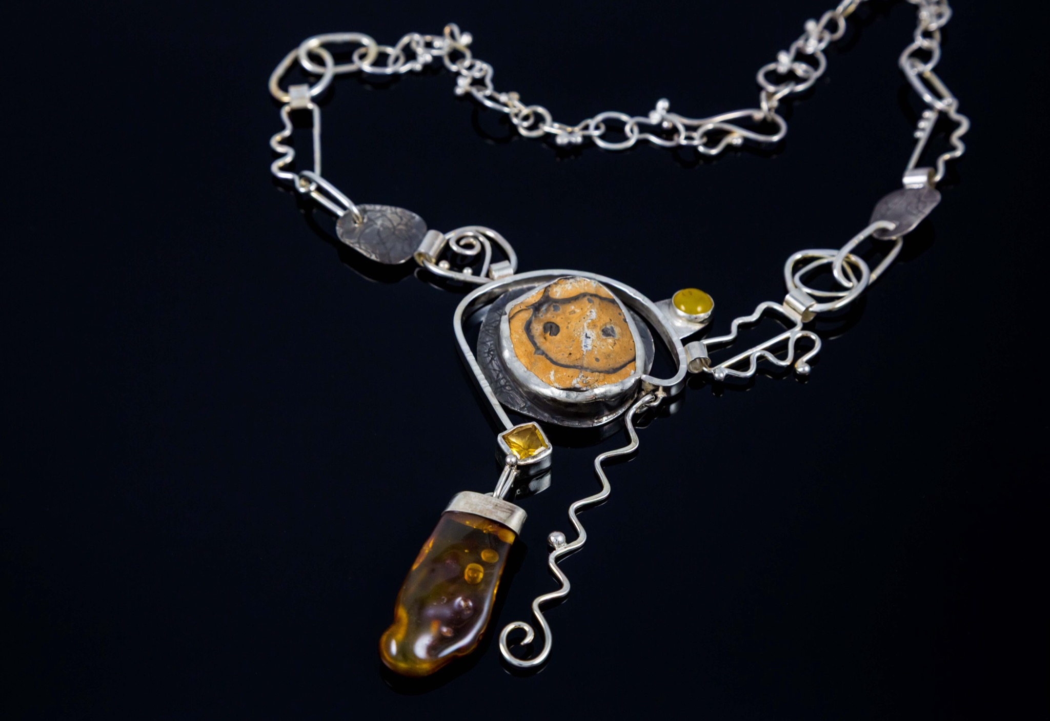 Smiles & Giggles Smiles & Giggles Smiles & Giggles Think back to what it was like to be tickled! Artist Blair Anderson Metals Sterling Silver Stones Riogrande Rustic Stone • Citrine • Yellow Agate • Mexican Amber $750.00
