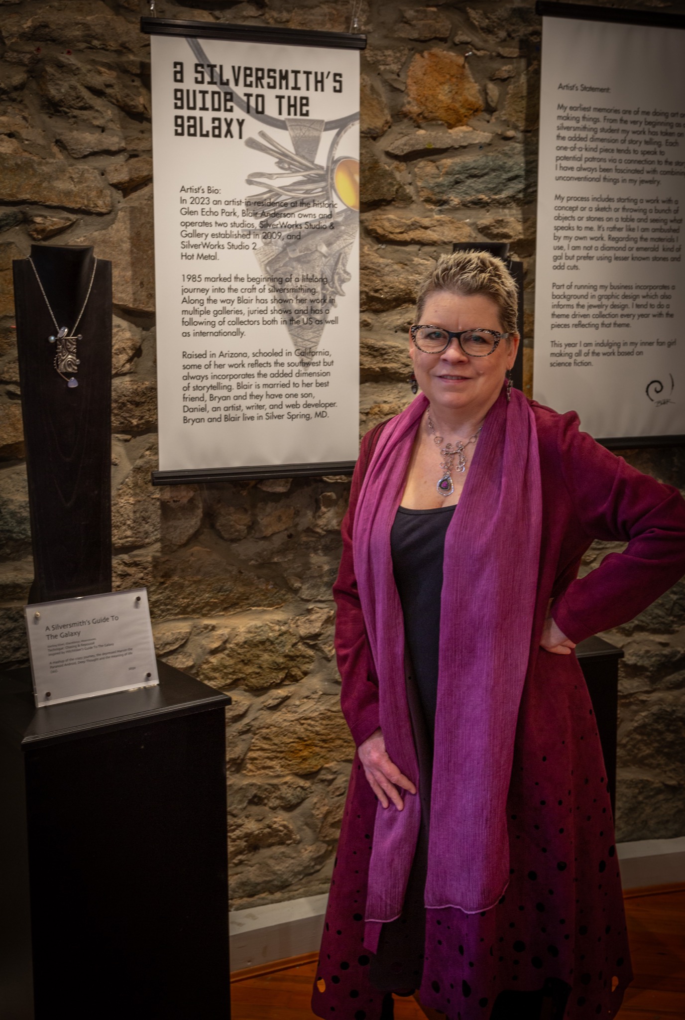 An artist-in-residence at the historic Glen Echo Park, Blair Anderson owns and operates two studios, SilverWorks Studio & Gallery established in 2009, and SilverWorks Studio 2